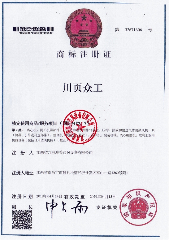 商標(biāo)注冊證(川頁眾工